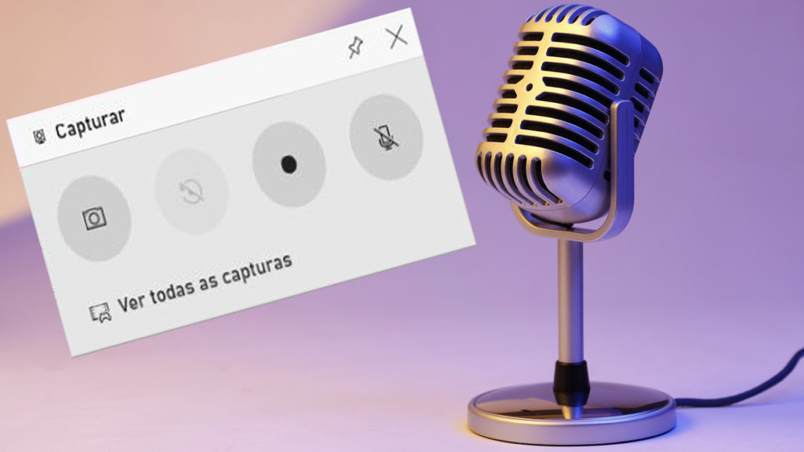 Na parte superior à esquerda tem a janela de Capturar. O primeiro botão, com uma câmera, captura uma imagem da tela. O terceiro botão é o mais importante, inicia a gravação. Quando você clica nele, ainda precisa clicar em qualquer ponto da tela para esconder o Game Bar. A partir desse ponto você pode iniciar seu vídeo. Quando quiser interromper a gravação, basta usar o mesmo atalho novamente e clicar no mesmo botão para parar.