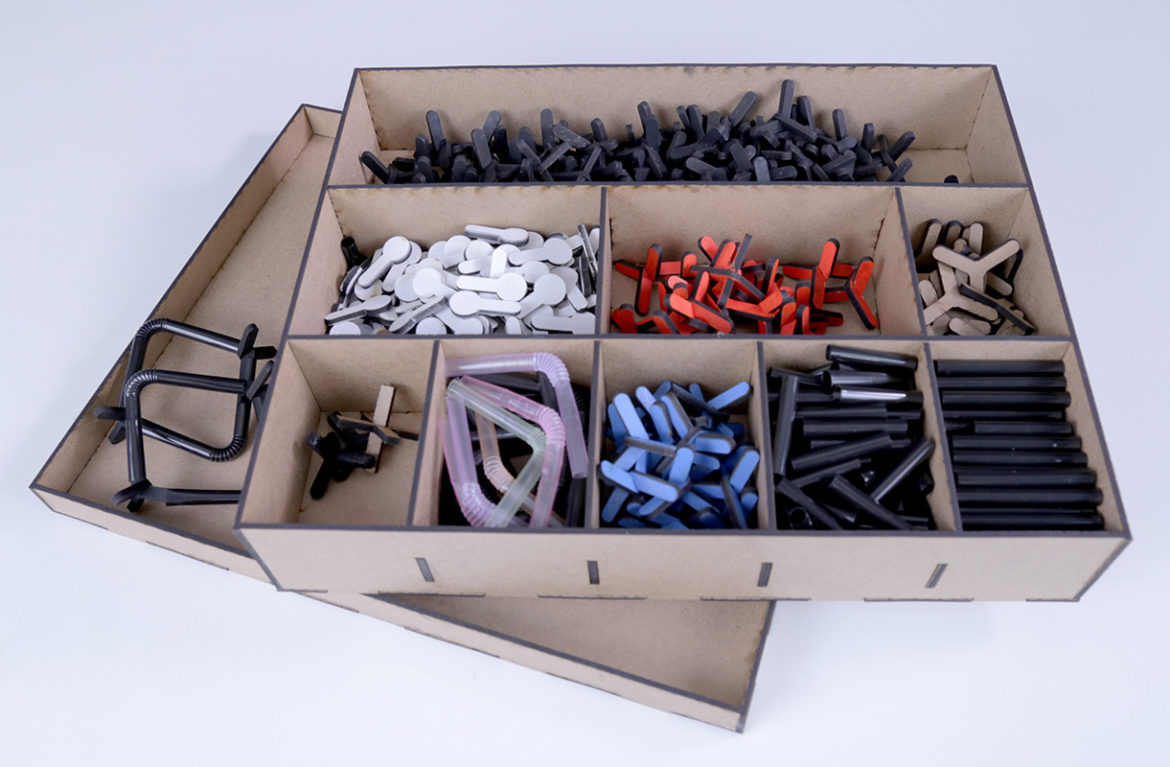 Um conjunto de peças para a construção de modelos de moléculas de baixo custo. As peças podem ser fabricadas em MDF ou papelão com uma máquina de corte a laser e são conectadas com canudos comuns de plástico.