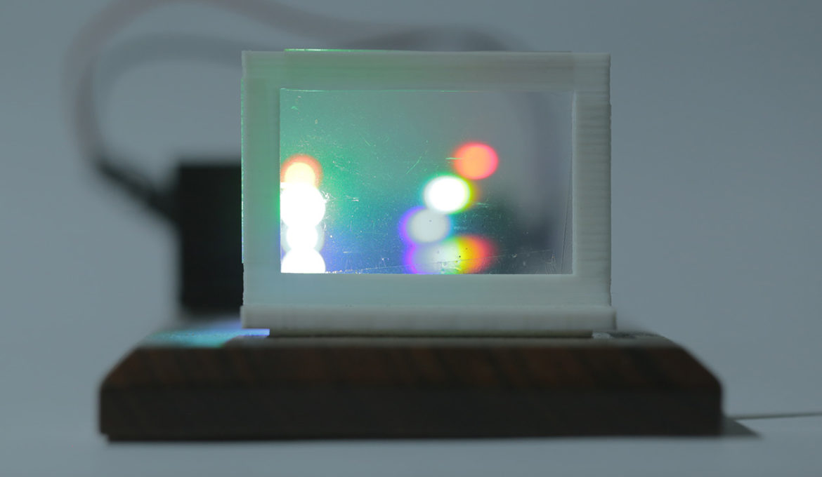 Uma montagem portátil para demonstrar o espectro da luz de LEDs de diversas cores.