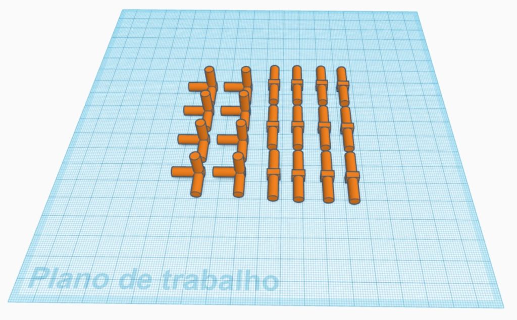 Assim, cortamos os canudos em pedaços de 13,5 cm. Imprimimos as peças em PLA, com a altura de camada de 0,2 mm.
