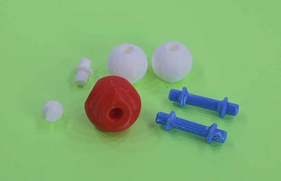 Estes modelos são clones de um modelo molecular comercial. Escolhemos este modelo de um carbono sp3, mas vamos usá-lo para imprimir os átomos de oxigênio das moléculas de água, uma vez que precisamos de 4 conexões. O outro modelo que usamos é para os átomos de hidrogênio das moléculas de água. A partir desses modelos, criamos uma conexão curta, que liga o oxigênio aos átomos de hidrogênio da água. E usamos a conexão longa criada pelo autor do modelo, para as ligações de hidrogênio que ficam entre as moléculas de água no gelo.