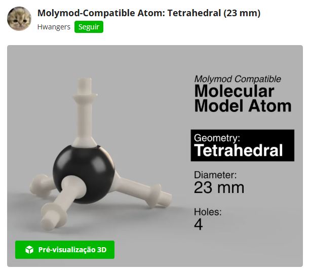 O modelo que usamos foi adaptado de modelos disponíveis no site Maker World: https://makerworld.com/pt/models/584525-molymod-compatible-atom-tetrahedral-23-mm.